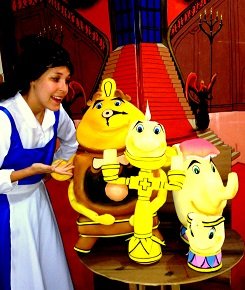 A magia está nas cenas do castelo, onde personagens como o Bule, o Castiçal, a Xícara e o Relógio, outrora funcionários do reino, atuam como atrapalhados amigos da charmosa Bela.