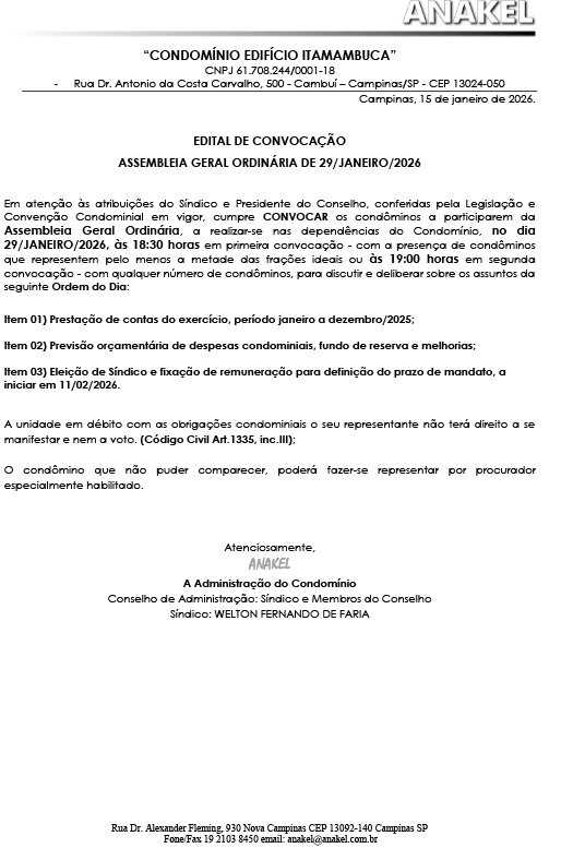 Assembleia Geral Edifício ITAMAMBUCA