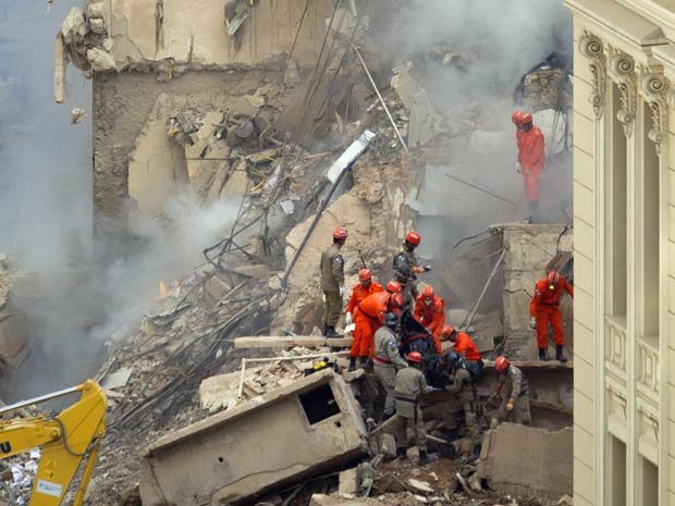 O subsecretário de Defesa Civil do Município do Rio de Janeiro, Márcio Motta, informa que mais dois corpos foram encontrados entre os escombros dos três prédios que desabaram ontem à noite (20h30) na Avenida 13 de Maio. Os corpos ainda não foram resgatados. No total, o Corpo de Bombeiros contabiliza cinco mortes (três corpos estão no Instituto Médico-Legal) e ainda procura 11 pessoas desaparecidas.