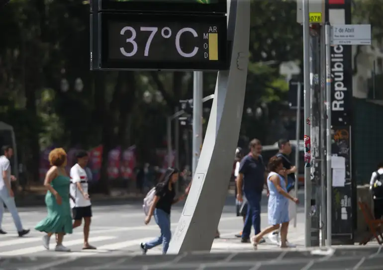 Na capital paulista, as máximas devem atingir novamente entre 34 °C e 35 °C, com sol forte e aumento de nuvens ao longo da tarde. Há possibilidade de chuva, mas de forma irregular e localizada, insuficiente para amenizar o calor ou alterar o cenário atmosférico predominante. O tempo seco em algumas áreas agrava a sensação térmica, enquanto o ar quente persistente mantém o desconforto.