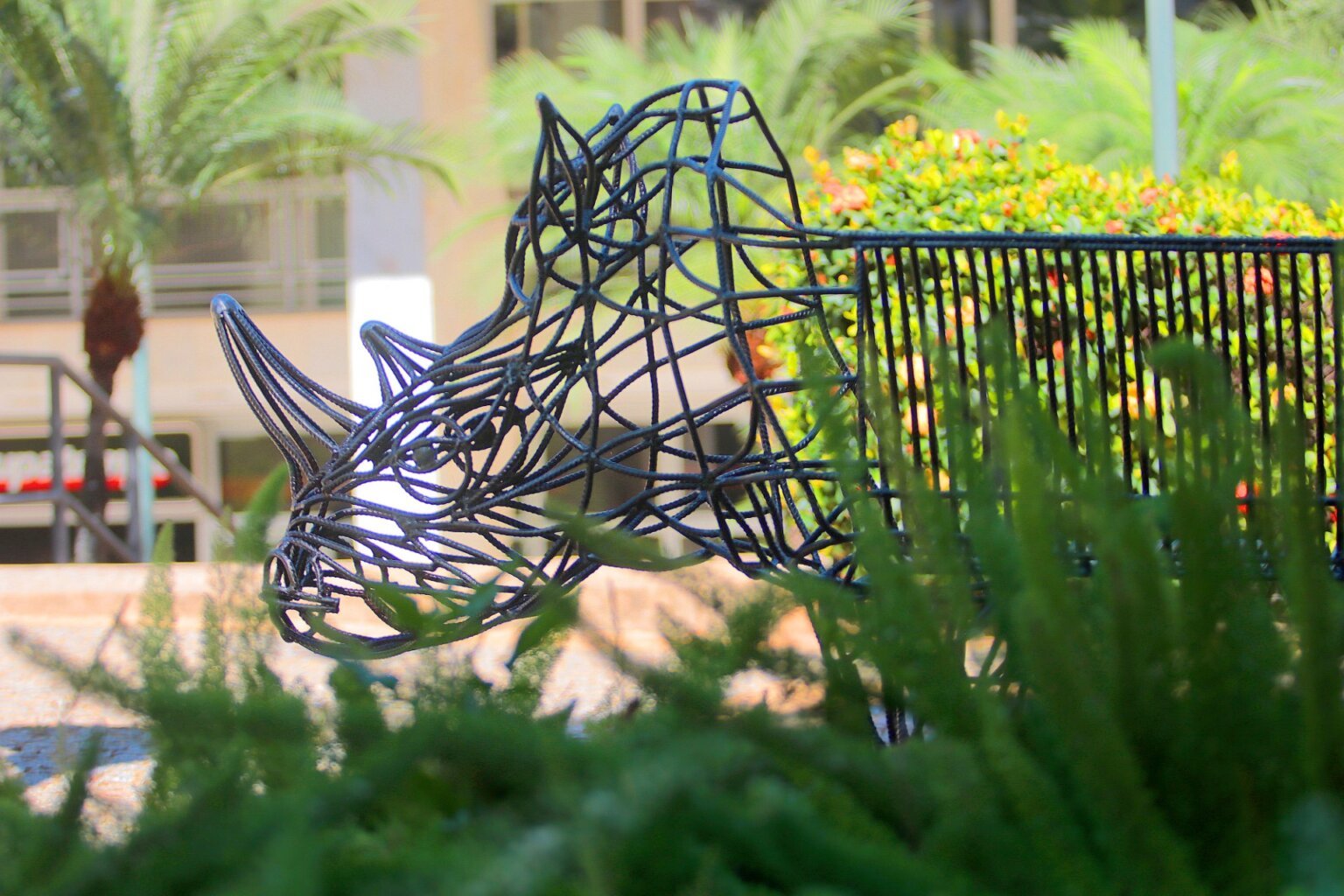 Entre as intervenções que mais chamaram atenção, está o banco em formato de rinoceronte instalado em frente ao MACC, obra de João Caçador. A peça faz referência a uma exposição de Salvador Dalí que esteve no museu em 1998. “Aquele rinoceronte me marcou e me fez querer ser artista”, relembra.