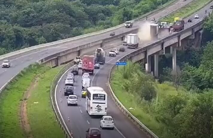 Imagens de câmeras de monitoramento mostram que a carreta trafegava por um trecho com lentidão quando desviou para o acostamento, ultrapassou veículos parados e, já sobre a ponte, cruzou para a faixa da esquerda, atingindo as viaturas e as equipes que trabalhavam no local. À polícia, o motorista afirmou que o veículo ficou sem freio. Ele foi submetido ao teste do bafômetro, que não indicou ingestão de álcool.