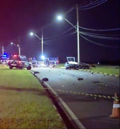Um carro bateu em dois postes na avenida José Jayme de Moraes Salles Gonçalves Cortes, em Paulínia, na noite de domingo (11). De acordo com a Guarda Municipal, o veículo trafegava em alta velocidade quando a motorista perdeu o controle da direção e colidiu com os postes em sequência.