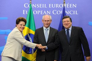 Dilma se reuniu por cerca de duas horas, durante a cúpula, com os presidentes do Conselho Europeu, Herman Van Rompuy, e da Comissão Europeia, José Manuel Durão Barroso, além de ministros brasileiros. No encontro, os temas que dominaram os debates foram o agravamento da crise econômica internacional, a violência na Síria e os conflitos nos países árabes, além de acordos multilaterais.