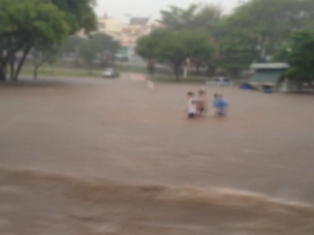 Três pessoas tentaram atravessar o trecho e ficaram com água até a altura da cintura. Na Avenida Barão de Itapura também houve correnteza forte.