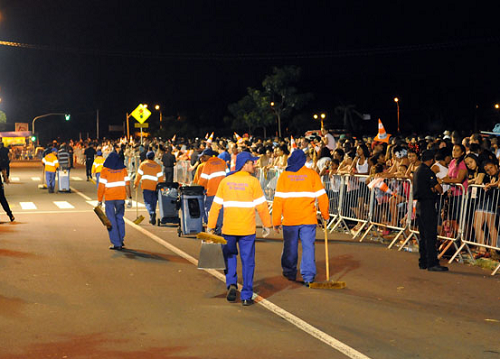 Para manter a limpeza nos três locais onde foi realizada a festa, o departamento estabeleceu um cronograma divulgado na sexta-feira, dia 17 de fevereiro. Cada região contou com duas equipes de varrição que trabalharam em dois turnos, durante e após a festa.