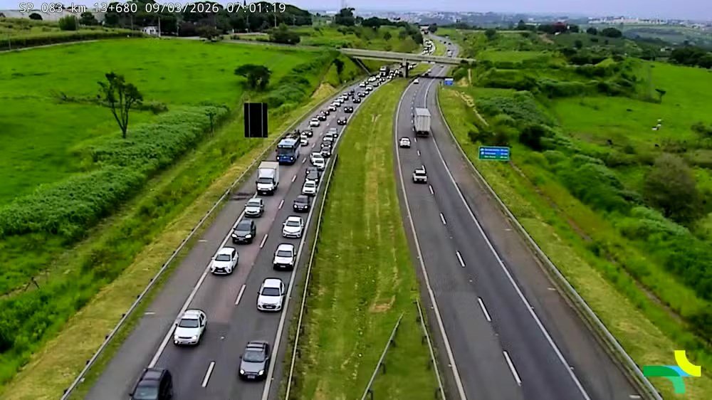 De acordo com a concessionária Rota das Bandeiras, um dos veículos envolvidos permaneceu parado na faixa de rolamento após a colisão, o que contribuiu para a lentidão no trecho.