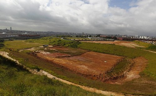 Um Pai Nosso foi rezado pelos operários, posicionados em círculo, e, exatamente às 8h14m desta segunda-feira (30), a 1.104 dias do começo da Copa do Mundo de 2014, as obras do estádio do Corinthians, batizado popularmente de “Fielzão”, finalmente tiveram início em Itaquera, bairro da zona leste de São Paulo. Após alguns adiamentos de datas, três caminhões e três tratores fazem a terraplenagem do terreno de 197 mil metros quadrados.