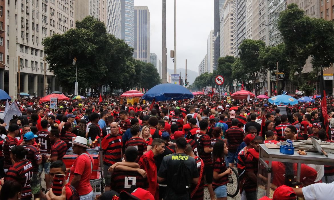 Antes da confusão, as cenas de festa na Rua Primeiro de Março e na Avenida Presidente Antonio Carlos lembravam megablocos de carnaval que desfilam no mesmo espaço, reservado neste domingo para a celebração dos títulos do Flamengo.