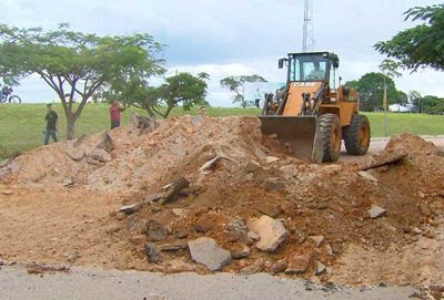 Um trator contratado pela administração municipal nivelou o asfalto da estrada onde ficava uma valeta. O guard-rail colocado pela empresa no dia 5 para interditar o acesso também foi removido.