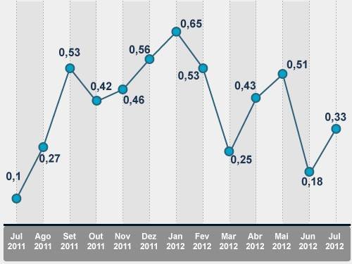 A inflação oficial, medida pelo Índice Nacional de Preços ao Consumidor Amplo (IPCA), fechou outubro deste ano em 0,59%, taxa superior ao 0,57% de setembro deste ano e ao 0,43% de outubro do ano passado. O dado foi divulgado hoje (7) pelo Instituto Brasileiro de Geografia e Estatística (IBGE).