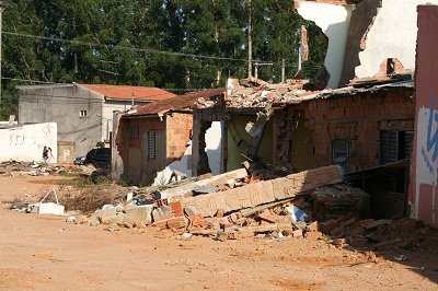 Após a realocação das famílias para o programa Minha Casa Minha Vida, no lugar das casas restaram apenas restos da destruição.