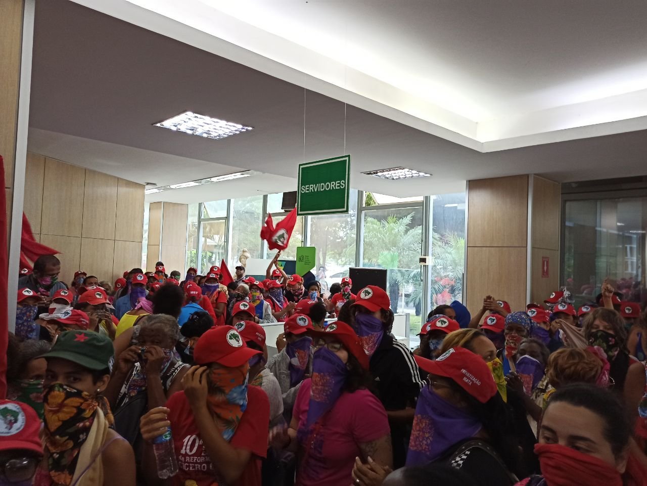 “Enfurecidas, em luta, em defesa dos nossos territórios da nossa biodiversidade, dos direitos conquistados pela classe trabalhadora, denunciamos a aliança mortífera e destrutiva entre o governo Bolsonaro e o capital internacional imperialista que tem produzido violência”, gritaram as mulheres sem terra ao ocuparem o prédio na Esplanada dos Ministérios.
