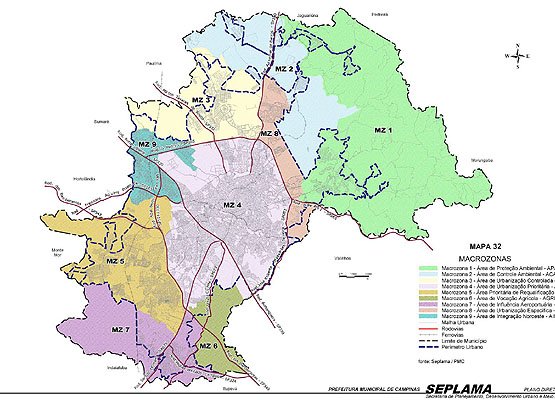 Macrozona 9 – Área de Integração Noroeste (AIN): localizada a norte do Município. Abrange os bairros Jardim Santa Mônica, Jardim São Marcos, Jardim Campineiro, Amarais e o Distrito de Nova Aparecida.