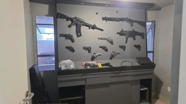 O que mais chamou a atenção dos investigadores foi o volume e a diversidade de armamentos encontrados. Foram apreendidas 30 armas de fogo, incluindo fuzis, metralhadoras, pistolas e revólveres de diferentes calibres. Em um endereço localizado em Minas Gerais, a Polícia Federal encontrou um painel expositor com armas longas, entre elas uma carabina, uma escopeta e um fuzil de assalto, além de armamento curto.