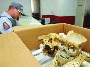 Os dois crânios humanos e diversos ossos encontrados por um vigilante dentro de uma caixa abandonada no início do mês no Cemitério de Sousas foram enviados na última segunda-feira, dia 10, para análise no Instituto Médico Legal (IML) de Campinas. Os resultados sairão no prazo de 30 dias. De acordo com o delegado responsável pela Delegacia de Sousas, Tadeu Aparecido Brito de Almeida, o laudo do IML irá apontar se houve indício de crime. “O documento irá nos dar informações sobre o sexo, data da morte e sinais de violê