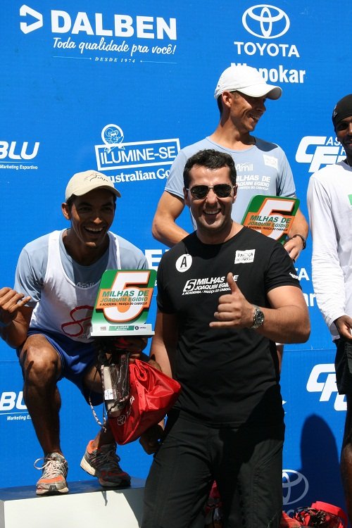 Pedro Oliveira entrega o prêmio ao 1º colocado masculino