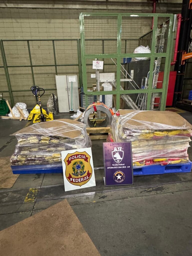 A apreensão ocorreu durante fiscalização conjunta realizada por equipes da Polícia Federal e da Receita Federal do Brasil, que atuam no controle de mercadorias destinadas ao exterior.