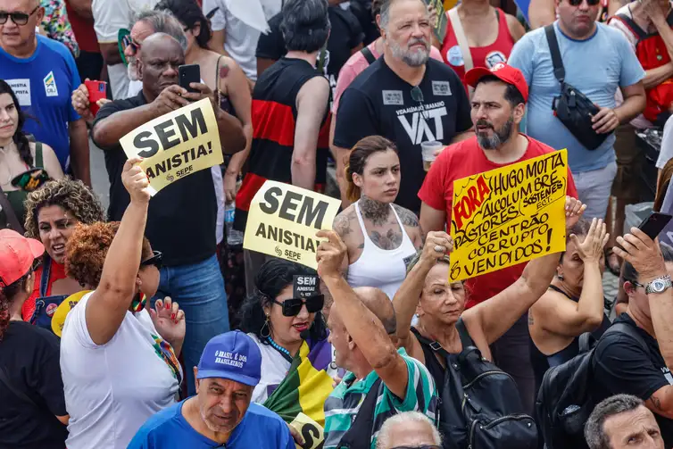Em Brasília, o ato começou em frente ao Museu da República e seguiu até o Congresso Nacional. Durante a caminhada, manifestantes entoaram palavras de ordem como “sem anistia para golpista” e exibiram cartazes com críticas diretas ao Legislativo e ao presidente da Câmara, Hugo Motta (Republicanos-PB). O clima foi de protesto contra o conteúdo do projeto e também contra a forma como a votação foi conduzida.