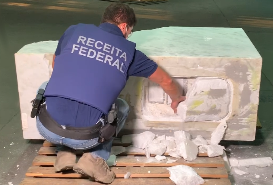 A Receita Federal interceptou na tarde de ontem, dia 28 de junho, no Aeroporto de Guarulhos, uma carga que seria exportada para a Europa, contendo 50 kg de cocaína. A droga estava oculta no interior de um lavatório esculpido em mármore. A cocaína foi identificada com o auxílio de cães farejadores da Receita Federal.