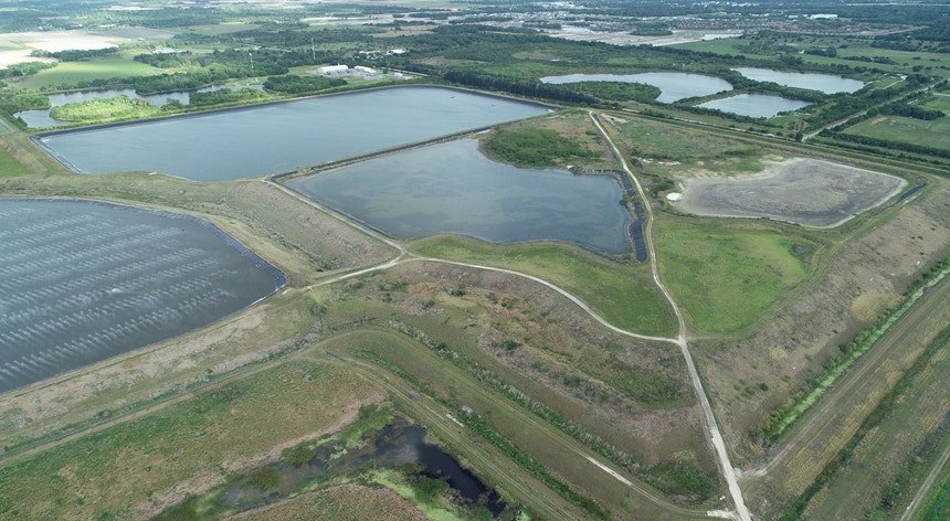 A lagoa abandonada fica em Piney Point, numa antiga mina de fosfato, e contém fosfogesso, um produto residual que resulta da fabricação de fertilizantes. Equipes tentam drenar a água contaminada com bombas gigantes.