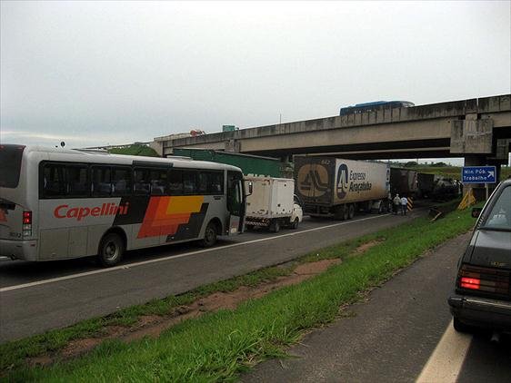 Não há previsão de quando a pista vai ser liberada. O motorista da carreta ficou ferido e foi levado para o Hospital de Clínicas (HC) da Unicamp. As causas do acidente ainda são desconhecidas, mas um dos pneus da carreta está estourado, segundo a polícia.Técnicos da Cetesb estão no local para avaliar os danos. Não há previsão de liberação da via.