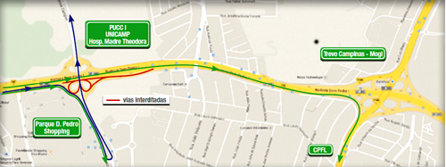 Durante as obras, não haverá acesso pelo viaduto da PUC. Utilize a rodovia Miguel Noel Nascentes Burnier (CPFL) ou a Av. Guilherme Campos.